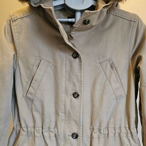Massimo Dutti Tan Fur Trim Hooded Parka Coat Jacket Utility