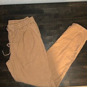 Massimo Dutti Tan Linen Blend Pull On Pleated Front Pant Size 6