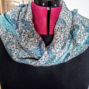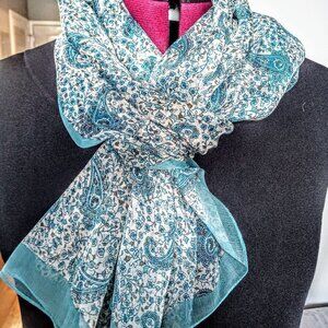 Sheer pure silk oblong scarf/wrap from Massimo Dutti features a rich turquoise blue paisley print and solid border.