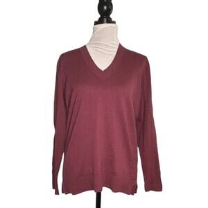 Massimo Dutti V-Neck Wool Silk Sweater Burgundy Size Large
