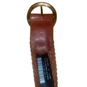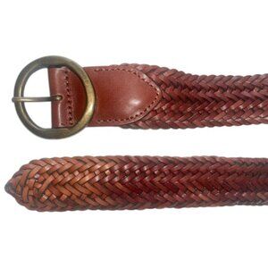 Massimo Dutti Vintage Wide Leather Brown Braided Belt with Gold Round Buckle