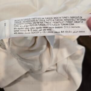 The Massimo Dutti Women's Cream Sweater Vest in size Large features a stylish V-neck design with an oversized, relaxed fit perfect for a variety of occasions such as casual outings, workwear, or business meetings. Made from a comfortable knit fabric blend of viscose and cotton in a solid ivory color, this vest is suitable for all seasons and offers a stretch for added comfort. The designer brand Massimo Dutti adds a touch of sophistication to the classic, preppy style, making it a versatile and fashionable addition to any woman's wardrobe.