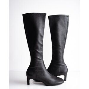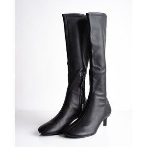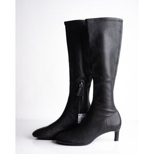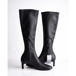 Massimo Dutti Womens Leather Boots Below Knee Black US 6.5 EU 37 NIB 1020/450