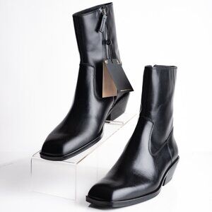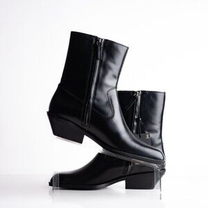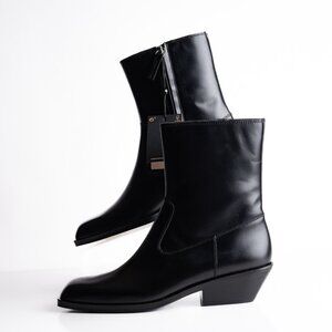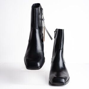 Massimo Dutti Womens Leather Boots Square toe Black US 9 EU 40 NWB 1130/350