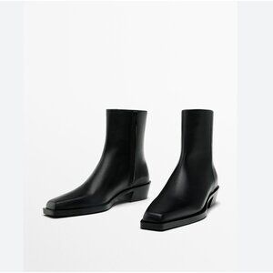 Massimo Dutti Womens Leather Boots Square toe Black US 9 EU 40 NWB 1182/250
