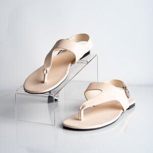 Massimo Dutti Womens Leather Thong Flats Ivory Cream US 9 EU 40 New 1708/450