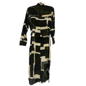 Massimo Dutti Womens Long Dress EU 42 US 10 White Black Geometric 6605/819 NWT