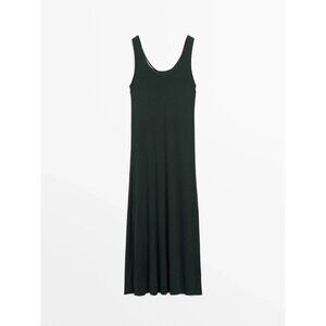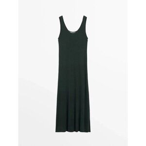Massimo Dutti Womens Midi Tank Dress S Small Dark Green Round Neck 6621/521 NWT
