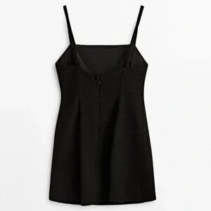 Massimo Dutti Womens Mini Dress Medium Black Beaded Spaghetti Strap 9210/954 NWT