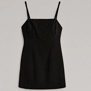 Massimo Dutti Womens Mini Dress Small Black Beaded Spaghetti Strap 9210/954 NWT
