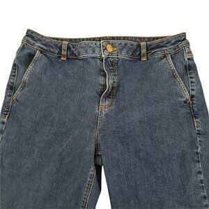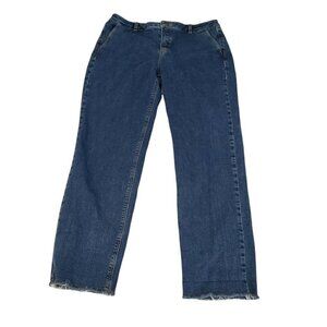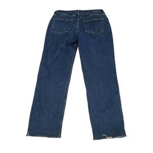 Massimo Dutti Womens Raw Hem Straight Leg Jean 8 Mid Rise Dark Wash