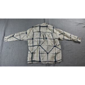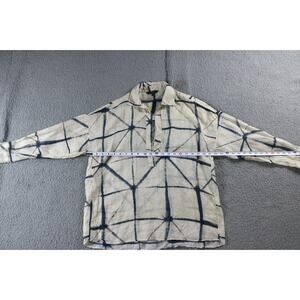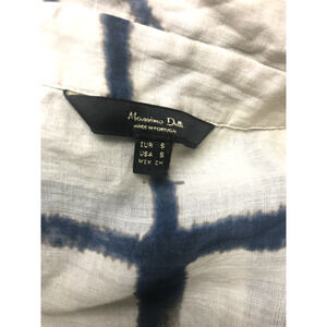 Massimo Dutti Womens Shirt S Tunic Half Button Geometric Blue Tan Cotton