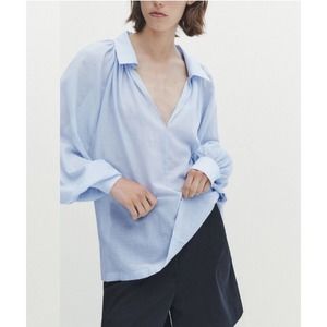 Massimo Dutti Women's Shirt Size M Blue 100% Cotton Basic