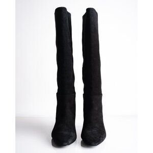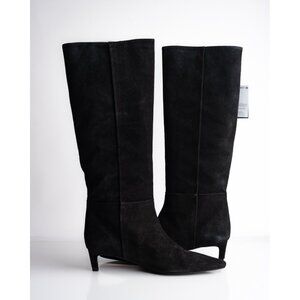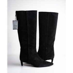 Massimo Dutti Womens Suede Heeled Boots Black kitten US 7.5 EU 38 NWT 1026/450