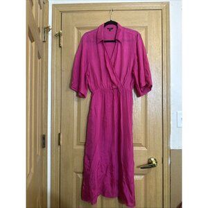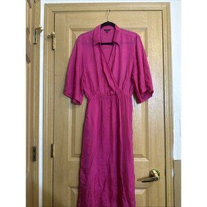Massimo Dutti XS Pink 100% Cupro Wrap Midi Dress Collared 3/4 Sleeve Lightweight. Condition is Pre-owned - Excellent. Shipped with USPS First Class.