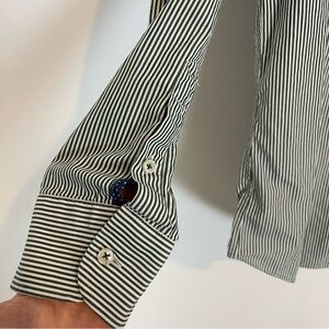 Massimo Dutti slim fit striped button up dress shirt white green cotton size L