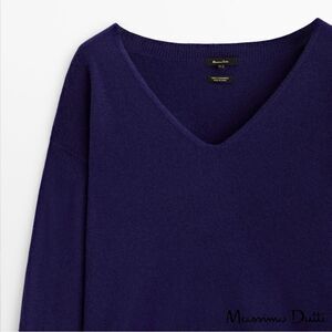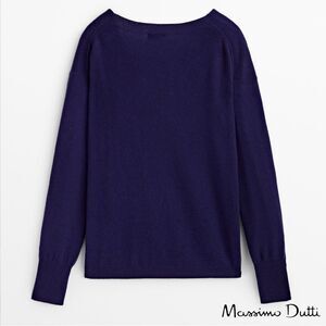 Massimo Dutti **NWT** 100% Cashmere V Neck Sweater in Ink Blue