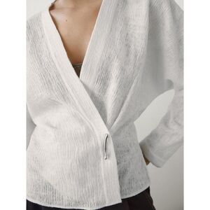 Massimo Dutti Women Shirt XS Cream Wool Cotton Surplice Neckline 5133/791 NWT