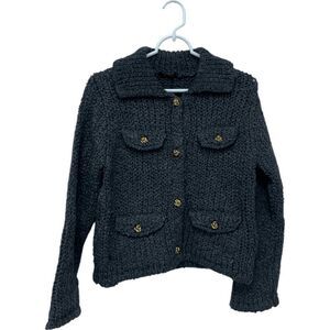 Massimo Dutti Womens Sweater Cardigan S Gray Knit Pocket Details 5711/630 NWT