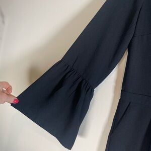 Massimo Fabbro Italy Women’s Sz 6 Solid Black Romper V-Neck Bell Sleeves Italy