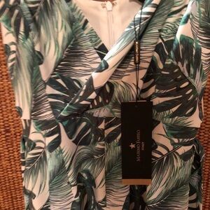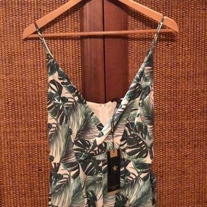 Summer jumpsuit, palms tropical print, spring summer event, pockets.