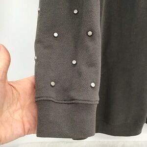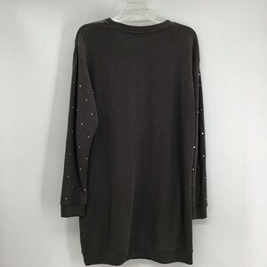 Nice Massimo Fabbro sweatshirt style studded sleeve mini dress. Features pull-over style dress with studs down each arm, round neck & banded neckline & hemline.