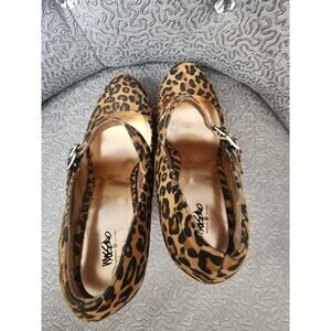 Gently preowned condition. Animal Print heels with Mary Jane style strap. Heel is approximately 4.25" high.