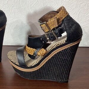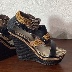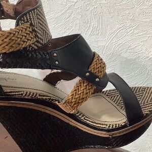 Massimo - Sz 8.5 - wedge heels Strappy paper straw feel to it natural look