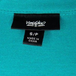Two styles in one: The peplum zips off and it turns into a cropped jacket. Features include ponte knit fabric, long sleeves, gold-tone zipper detail at waist, and hook and eye closure. 72% polyester, 24% rayon, 4% spandex. Measurements: bust (armhole to armhole x2) 36”, length (collar to hem) 22”. Made in China. Machine wash cold, dry flat.