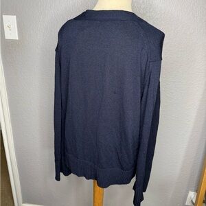 Stay cozy and stylish with this navy blue button-up sweater. Perfect for layering, this versatile piece is a must-have for any wardrobe.