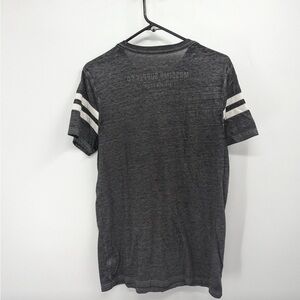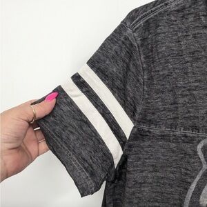 Massimo women’s gray Henley T-shirt with Rolling Stones graphic white stripe trim on sleeves size medium shirts in excellent preowned condition