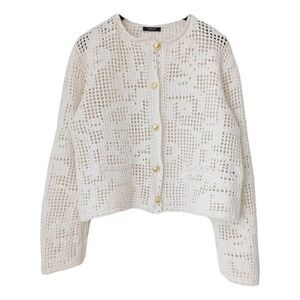 Massimo Dutti Women Sweater S Cream Crochet Cardigan Gold Buttons 5643/606 NWT