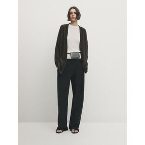 Massimo Dutti Women Sweater XL Cardigan Dark Green Knit Long Sleeve 5709/628 NWT