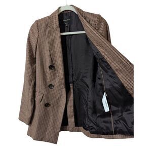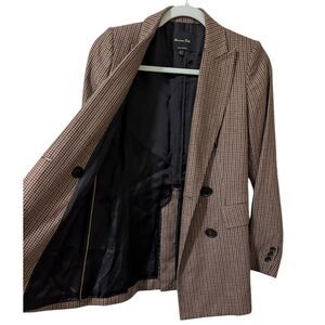 Massimo Dutti Women's 2 Houndstooth Checkered Wool Blend Double Breasted Blazer