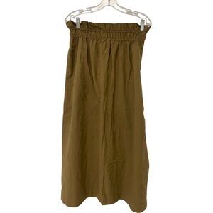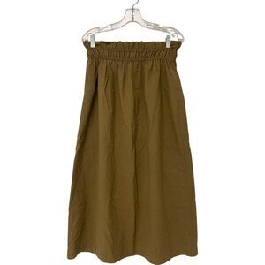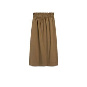 Massimo Dutti Womens Midi Skirt Medium Brown khaki Pull On Elastic Gathered Waist NWOT