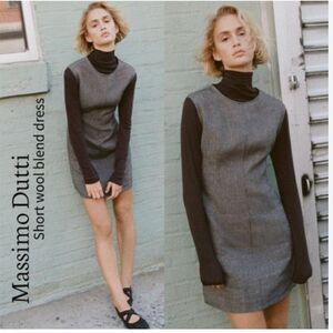 Massimo Dutti Womens Mini Dress Size S Black Gray Wool Blend 6673/673 NWT