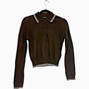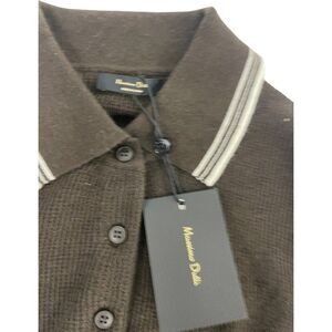 Massimo Dutti Womens Sweater XS Brown Polo Collar Contrast Knit 5634/609 NWT