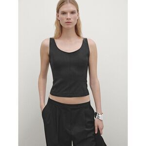 Massimo Dutti Womens crop Top Small Tank Gray Stretch Seam Details 5118/818 NWT