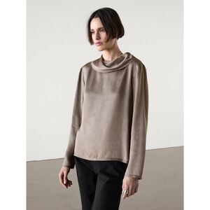 Massimo Dutti Womens Top Size S Gray Long Sleeve Drape Neck Blouse 5105/805 NWOT