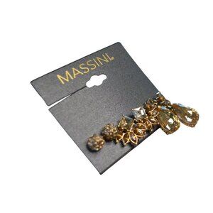 Elevate your style with this stunning Massini earring set. Featuring intricate rhinestone and teardrop designs, these gold earrings add a touch of elegance and sophistication to any ensemble. Perfect for a night out or special occasion, they make a great gift.