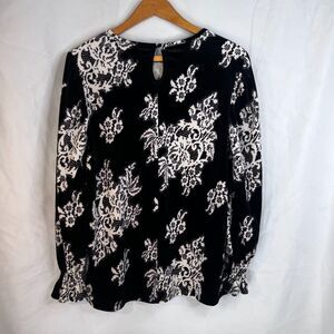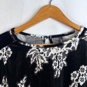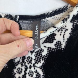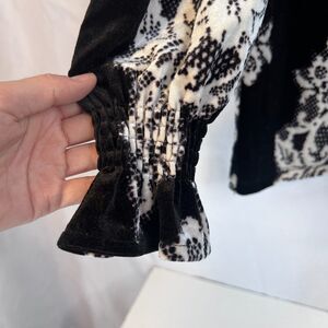 Massini Black & White Velvet Boho Blouse Gathered Cuffs Dressy Size Medium