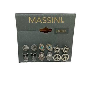 Massini Earrings Multi-Color 6-pack Stud Fastener Crystal Womens Fashion Jewelry