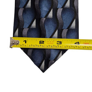 Massini Men’s Tie Blue Gray Geometric Pattern 3.75” Wide 100% Silk Handmade