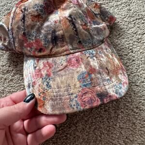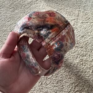 Massini Watercolor Floral Velour Baseball Cap Hat Adult One Size Adjustable. 1990s dusty floral print, velvety soft hat, adjustable strap at back. Hat is in very good used condition with no flaws or stains other than some minor wash wear. Please see close-up pictures for condition details. Brim has been slightly bent; it is not flat/straight.