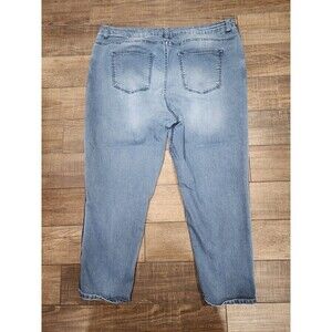 These Massini women's plus size jeans in size 24 feature a medium wash and a straight leg style. They are designed with a mid-rise waist measuring 42 inches, providing a comfortable fit for the wearer. The jeans are made of a blend of polyester, spandex, cotton, and rayon, offering stretch for ease of movement. These versatile jeans are perfect for everyday wear and can be easily fastened with either a zip or button closure.