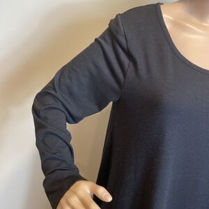 Massini black solid lace trim long sleeve tunic top, size M.