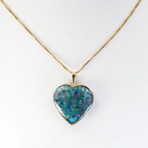 Massive 14k Gold Opal Triplet Onyx Heart Valentine Necklace