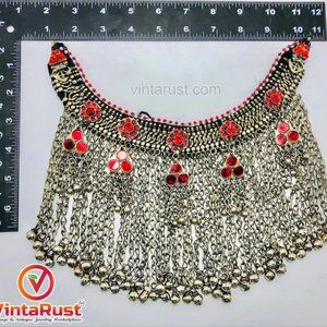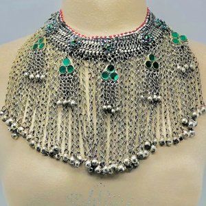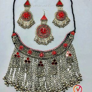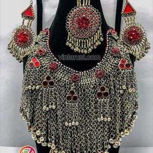 Indulge in the opulence of the Massive Afghan Tribal Jewelry Set and revel in the intricate beauty that transcends time. Own a piece of history, a masterpiece that celebrates tradition while embracing the contemporary. Experience the magic of Afghanistan's tribal heritage, lovingly curated into a jewelry set that is nothing short of extraordinaryThe enchanting Earrings, reminiscent of a bygone era, frame your face with an aura of sophistication and grandeur. As they sway gently with your every movement, you'll embody the grace and allure of Afghan tribal nobility.The enchanting Earrings, reminiscent of a bygone era, frame your face with an aura of sophistication and grandeur. As they sway gently with your every movement, you'll embody the grace and allure of Afghan tribal nobility.