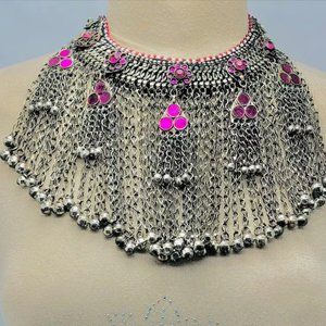 Indulge in the opulence of the Massive Afghan Tribal Jewelry Set and revel in the intricate beauty that transcends time. Own a piece of history, a masterpiece that celebrates tradition while embracing the contemporary. Experience the magic of Afghanistan's tribal heritage, lovingly curated into a jewelry set that is nothing short of extraordinaryThe enchanting Earrings, reminiscent of a bygone era, frame your face with an aura of sophistication and grandeur. As they sway gently with your every movement, you'll embody the grace and allure of Afghan tribal nobility.The enchanting Earrings, reminiscent of a bygone era, frame your face with an aura of sophistication and grandeur. As they sway gently with your every movement, you'll embody the grace and allure of Afghan tribal nobility.