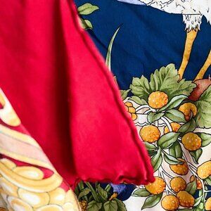 Massive All Silk Bird Floral Motif Hand Rolled Edge Scarf.